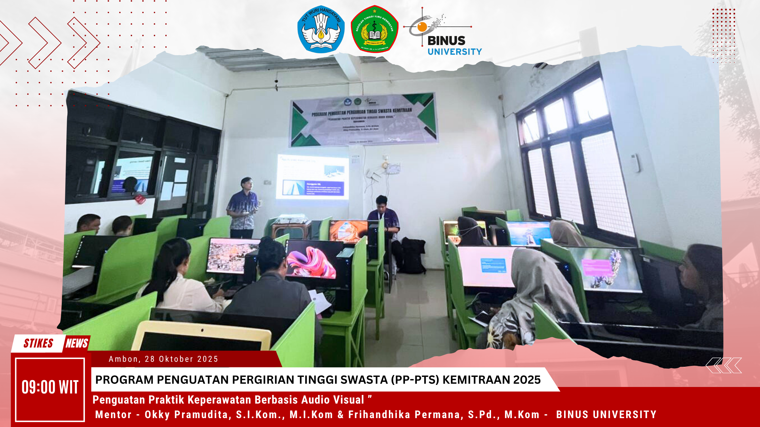 Ambon, 28 Oktober 2025 – Sekolah Tinggi Ilmu Kesehatan (STIKes) RS Prof. Dr. J. A. Latumeten kembali menunjukkan komitmennya dalam meningkatkan kualitas pembelajaran praktik keperawatan melalui kegiatan Pendampingan Program Penguatan Praktik Keperawatan Berbasis Audio Visual yang diselenggarakan di kampus STIKes RS Latumeten.