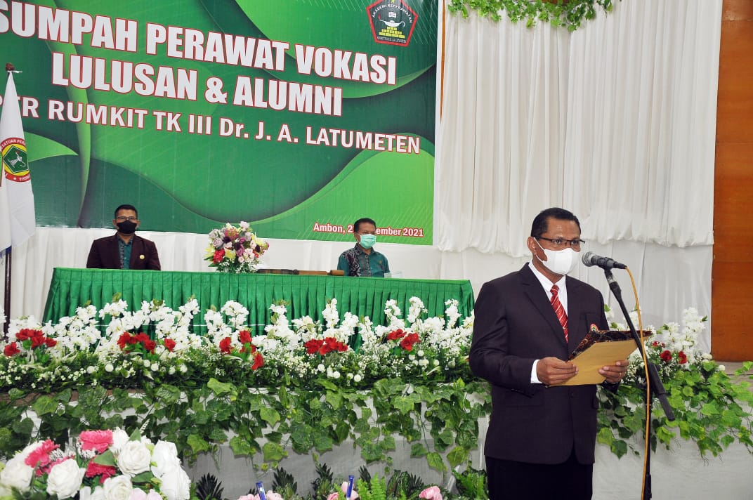 Ambon, 27 Desember 2021. Akademi Keperawatan Rumkit TK III Dr. JA Latumeten menggelar sumpah profesi keperawatan bagi para lulusan yang telah diyudisium pada tanggal 22 Desember 2021. Sumpah profesi ini dilaksanakan setelah para lulusan menyelesaikan uji kompetensi dan dinyatakan lulus. Sumpah profesi kali ini diikuti oleh 119 orang lulusan dari beberapa angkatan. Angkatan lulusan 2021 sejumlah 105, angkatan lulusan 2020 ... lukusan dan angkatan.....
