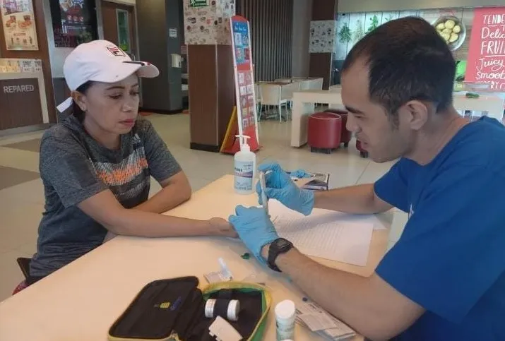 Selain jalan santai, dalam kegiatan ini juga dilaksanakan pemeriksaan kesehatan berupa pemeriksaan tekanan darah, cek gula darah, kolesterol dan asam urat.